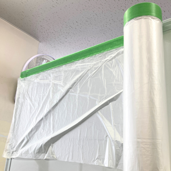 マスキングテープと養生シートが一体となった、養生資材。